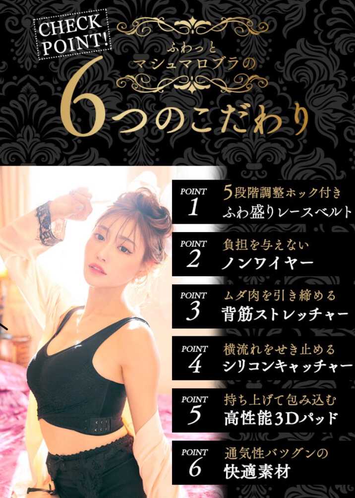 ナイトブラ 美しいバストの秘密は夜に仕込んでいる 明日花キララ マシュマロブラには、横流れを防ぐシリコンキャッチャーがあって、バストを引き寄せてきれいな形にしてくれますフックが5段階になっているので、いろんなバストサイズに合います生地が柔らかくて着心地がいいのに、寝ているときも形が崩れません3枚セット10,740円(送料無料)ナイトブラはマシュマロブラのサイトから購入できます↓