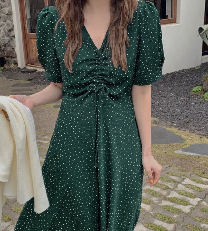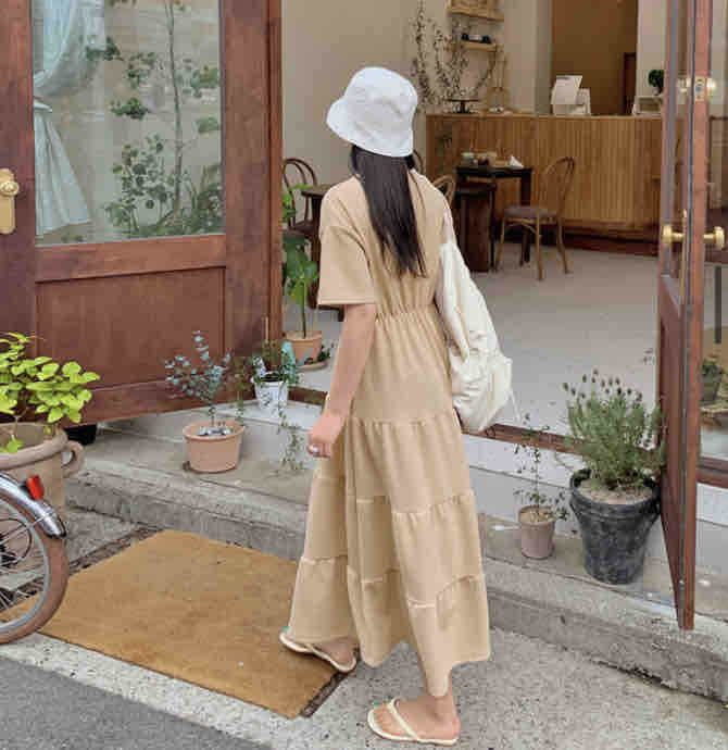 着こなしやすいカラー感でどなたでも気軽に着ていただけます♪縦長に開いたⅤネックで鎖骨ラインをアピール♡女性らしいムードを放ちます。バストラインのシャーリング加工でボリューム感をアップ!ショルダーラインのギャザーディテールのパフスリーブで華奢なシルエットを演出◎二の腕カバーも完璧です♪ロングな丈感の広がるロングスカートで脚長効果抜群!!軽くて風に揺れる素材感で体に沿って流れるシルエットが純粋な雰囲気を感じさせます♪