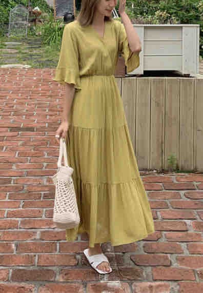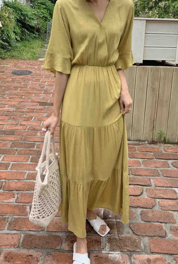 デイリーに着回しやすいブラック、マスタードの2カラー展開でご用意!深めのⅤネックラインネックラインとデコルテを強調し華奢なシルエットが完成◎バストラインにはボタン付きで露出を抑えました◎スリーブラインとスカートラインのフリルでラブリーに演出♡体型をカバーしてくれます♪ハイウエストラインで脚長効果抜群!!ウエストゴムで長時間の着用もラクに◎デイリーコーデからオフィス、パーティーコーデなど多様なシーンで大活躍すること間違いなしのワインピースです♪